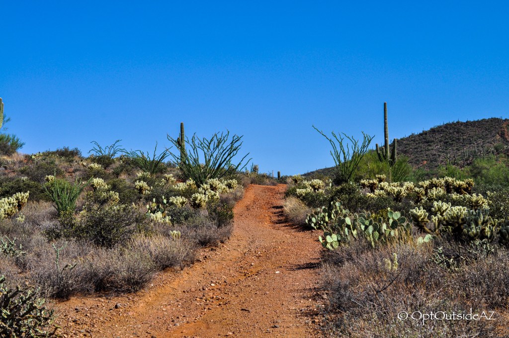Once done with Metate, you can continue west on Spur Cross or head up Tortuga. Spur Cross will remain level for the most part but can eventually take you to meet the Maricopa Trail. If this is not your goal and want a bit of a workout, head up Tortuga toward Elephant Mountain.
