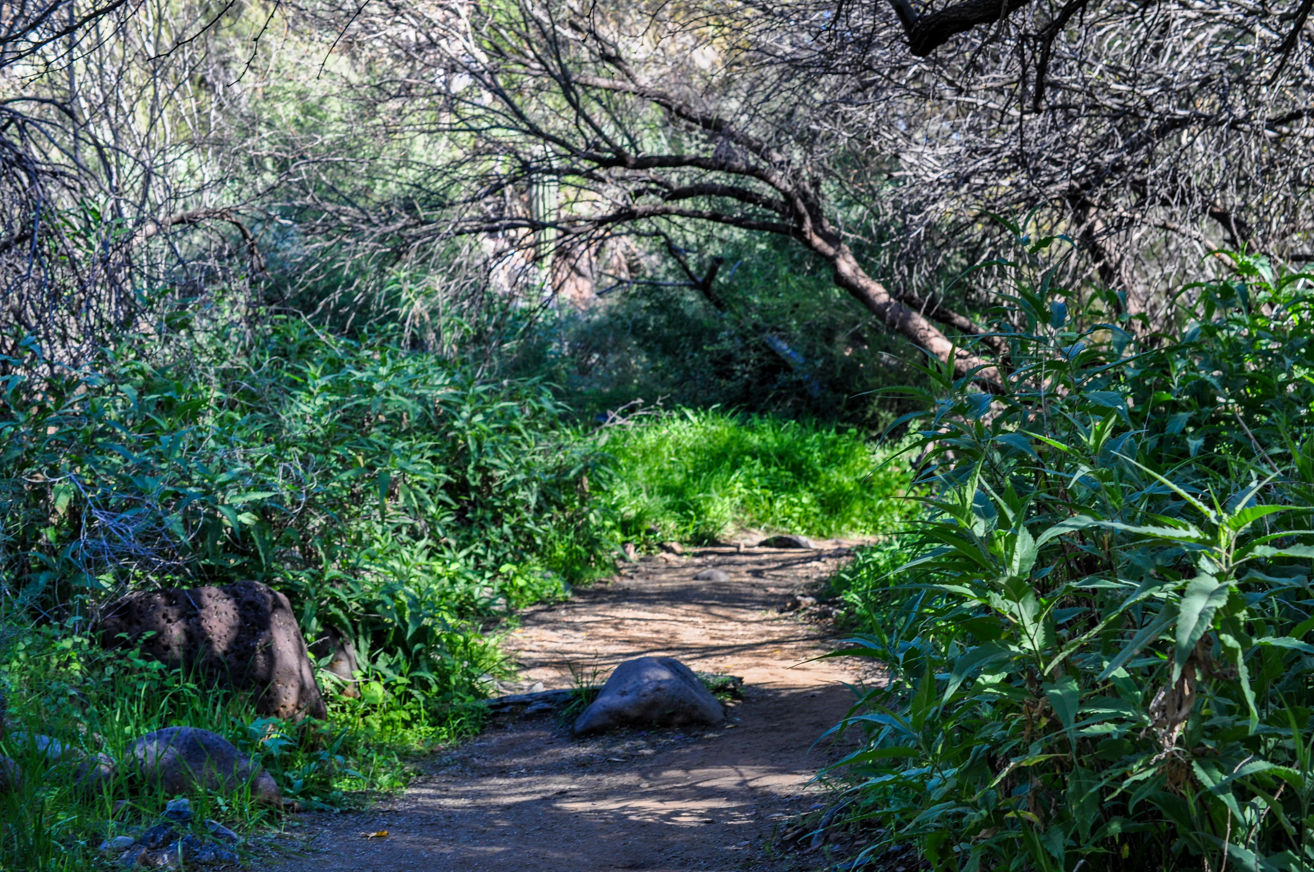 We hiked the northern part of Dragonfly, but the whole loop is only 1.1 miles long if you really want to immerse yourself in a desert oasis. December is also the prime month to enjoy this riparian habitat; the trees will be full and the birds will be singing. While Tortuga can be a challenge for little kids, Fairy Duster, Metate, Dragonfly, and Jewel of the Creek are fantastic spots to bring tinier humans. I will post a deeper review on all the wonders of Jewel of the Creek another time.